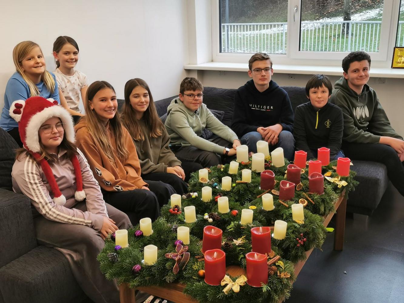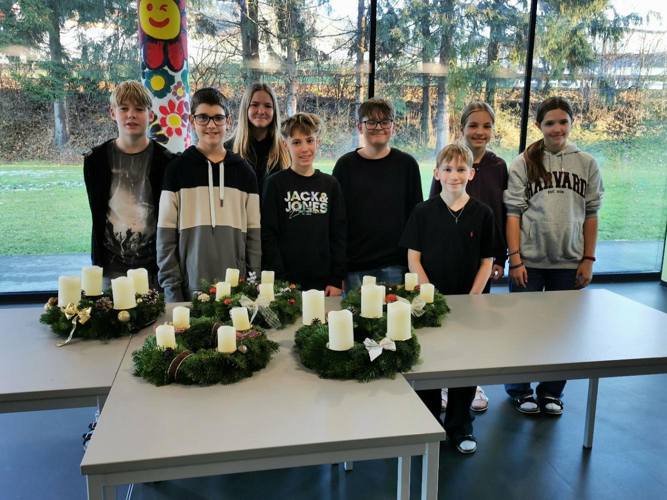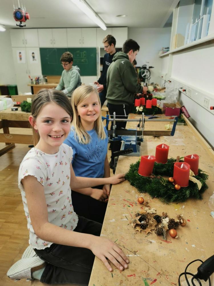 An zwei Nachmittagen fand ein gemeinschaftliches Adventprojekt statt. Die Schülerinnen und Schüler fertigten Adventkränze für ihre Klassenzimmer an.