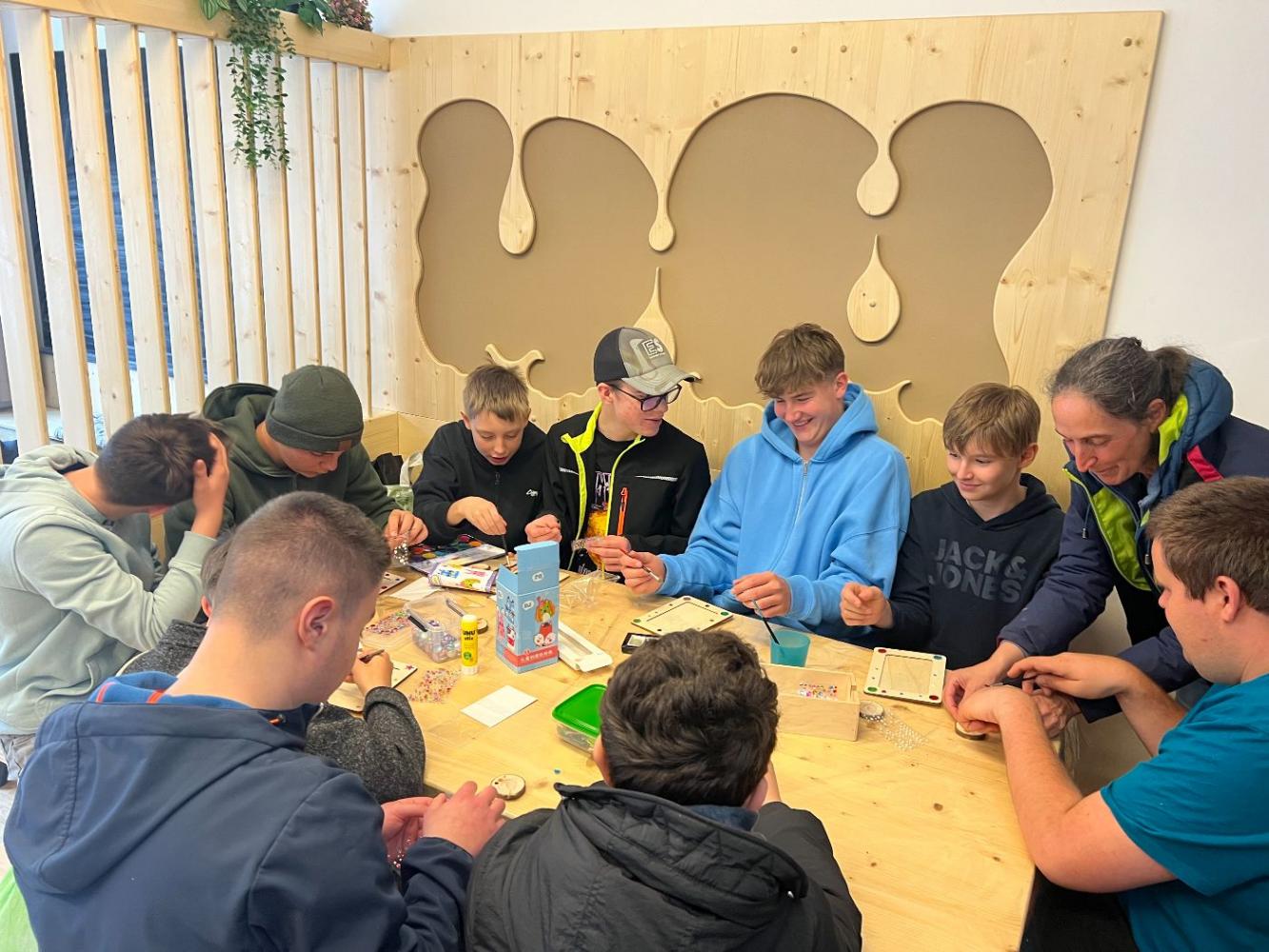 Am Freitag, den 25.04.25 hatte die 4c Klasse die Möglichkeit, die Diakonie Werkstätte in Kirchbichl zu besuchen. Dort erhielten die Schüler/Innen viele verschiedene Einblicke in den Alltag der Klienten. Sie konnten die Tischlerei, den Aktivitätenraum sowie den Entfaltungsraum in Augenschein nehmen. Ebenfalls durften sie mit einigen der Klienten basteln und Bilderrahmen gestalten. Ebenso wurden die Kids durch eine ausgesprochen vielfältige Jause gestärkt.