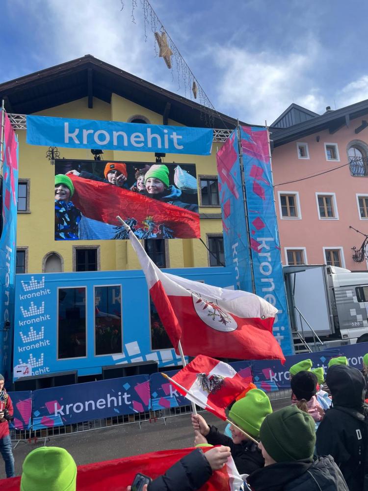 Mit dem Zug machten sich einige Schüler:innen und Lehrpersonen der MS Kirchbichl auf den Weg nach Kitzbühel. Nach einer kurzen Stadtbesichtigung ging es zum Renngelände, um die Fahrer des Super-G lautstark anzufeuern. Für viele Schüler:innen war es der erste Besuch beim Hahnenkammrennen und daher besonders spannend.